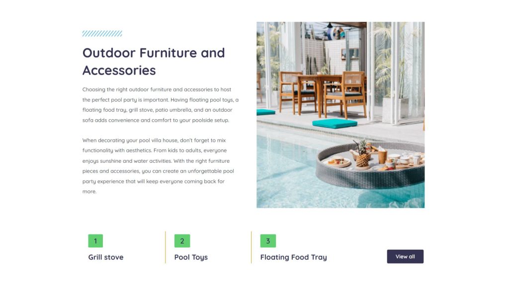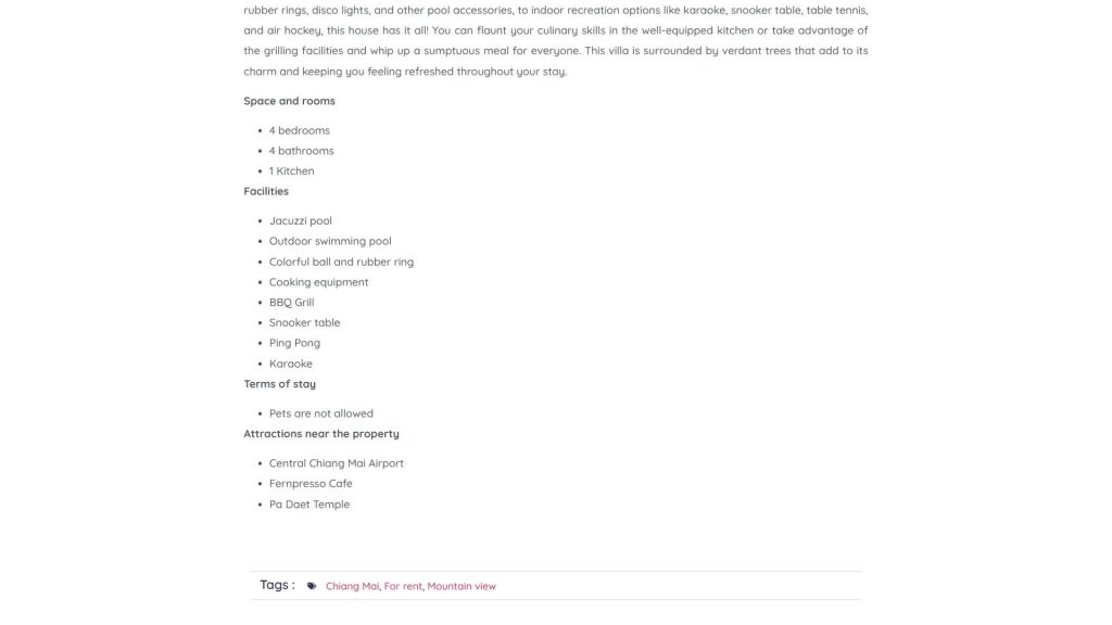 Beyond property listings, the platform delivers lifestyle content and product reviews. Articles help users enhance their pool villa experience through decorating tips and furniture recommendations. Content covers indoor and outdoor furniture, cleaning equipment, and essential accessories that elevate villa ambiance. The site organizes listings by region—Northern, Eastern, Western, Northeastern, Central, and Southern Thailand. This structure helps users explore options based on travel plans or investment interests efficiently.