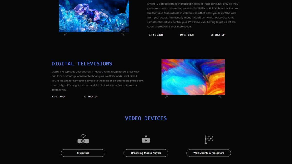 Beyond televisions, the site features a variety of video devices, home audio systems, and gaming accessories. These include projectors, streaming media players, soundbars, Bluetooth speakers, and gaming controllers for consoles and VR setups. Outdoor TV screens and overhead video systems for vehicles are also highlighted, along with furniture and storage solutions like TV cabinets and shelves. The platform combines product guidance with lifestyle content to support informed, stylish entertainment choices.
